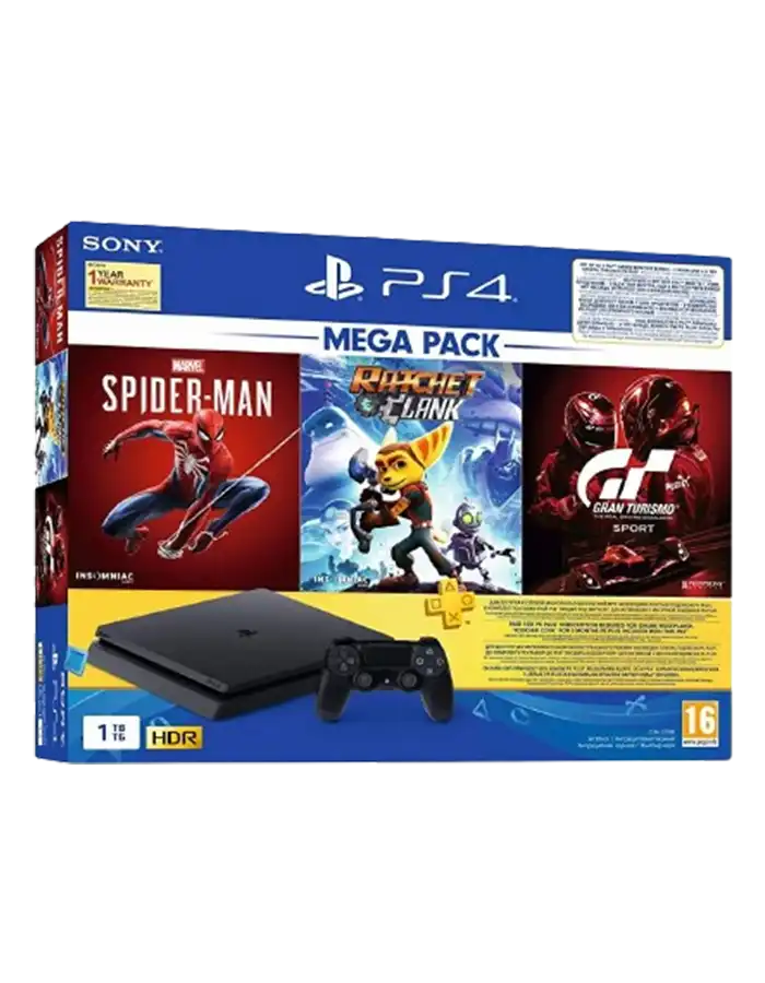 PS4 1TB Slim Bundled with SpiderMan, GTSport, Ratchet & Clank Description :
